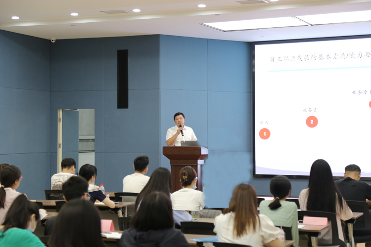 為了讓新員工充分了解職業(yè)發(fā)展所具備的素質(zhì)和能力要求,明確發(fā)展方向,從而更好取得職業(yè)上的順利發(fā)展和成功,8月9日上午,公司黨委副書記、副總經(jīng)理、工會(huì)主席羅平安為全體新員工作《業(yè)務(wù)崗位員工職業(yè)素養(yǎng)及發(fā)展空間探討》培訓(xùn)。
