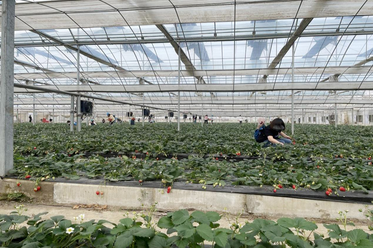在草莓大棚前,大家手拎籃子,興高采烈地進(jìn)入草莓棚中采摘草莓。大棚內(nèi)綠意盈盈、果香芬芳,一片勃勃生機(jī)的景象。大家一邊摘草莓一邊交流,盡情體驗(yàn)著采摘草莓、品嘗鮮果的樂趣,不一會(huì)兒,所有的籃子都被果實(shí)填滿。