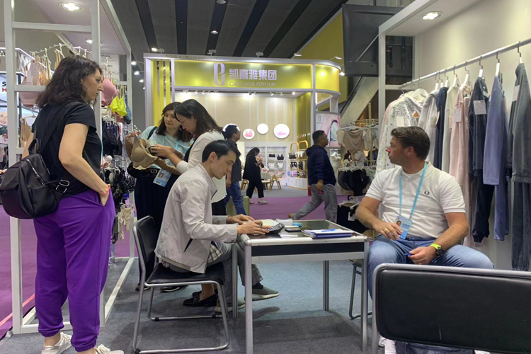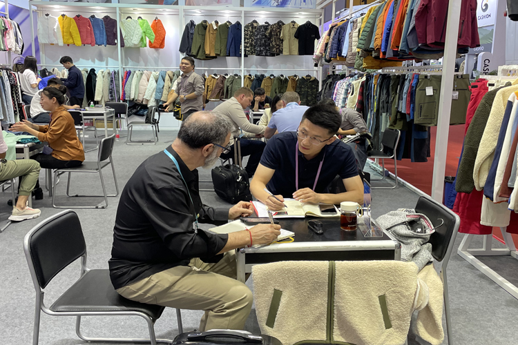 在棉服展位上,一款通道布面料做的經(jīng)典男士拼接款式棉服,防水防風(fēng)、面料舒適、方便活動(dòng);箱包展位上,新開模推出的拉桿箱頗受歡迎,在外層增加一個(gè)前口袋,內(nèi)附電腦隔層,方便電腦隨身攜帶和拿??;內(nèi)衣產(chǎn)品主打問貼膠、無(wú)縫系列,與常規(guī)的車縫內(nèi)衣相比較,無(wú)痕且舒適;鞋子展品樣式齊全、款式新穎,今年主推室內(nèi)保暖棉拖……客戶紛紛上前觀看、詢價(jià),展位前人聲鼎沸,好不熱鬧,目前已達(dá)成多筆初步意向訂單。
