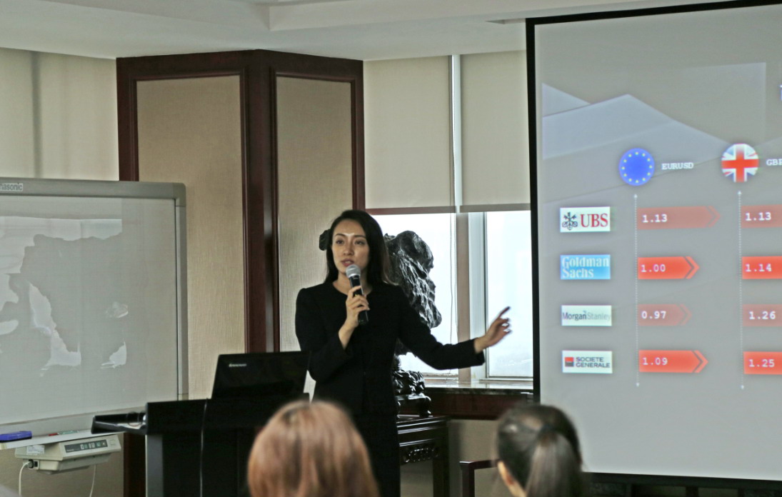 此次講座邀請(qǐng)到招商銀行總行金融市場(chǎng)部?jī)晌环治鰩熥髦髦v。他們先介紹了全球宏觀背景,分析市場(chǎng)變化趨勢(shì);再依據(jù)美國(guó)、歐洲和中國(guó)三個(gè)地區(qū)的政治和經(jīng)濟(jì)環(huán)境,詳細(xì)闡述了美元、歐元和人民幣匯率的變化趨勢(shì);最后,還為公司介紹了相關(guān)的匯率避險(xiǎn)產(chǎn)品,為公司業(yè)務(wù)的穩(wěn)定發(fā)展提供保障。
